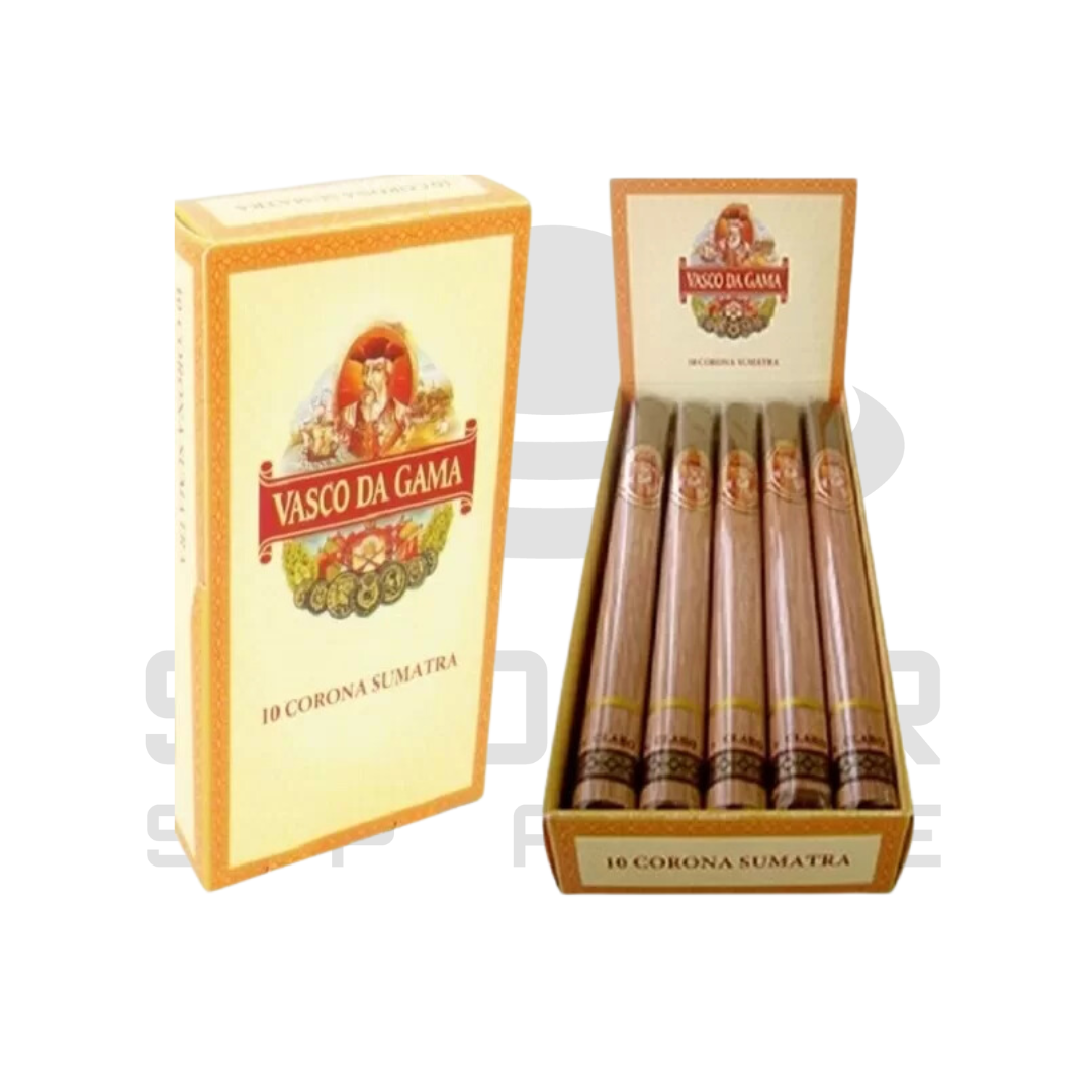 Charuto Alemão Vasco Da Gama Corona Sumatra é feito na Alemanha com blend de fumos de várias partes do mundo. Com custo acessível e ideal para uma degustação descompromissada.
