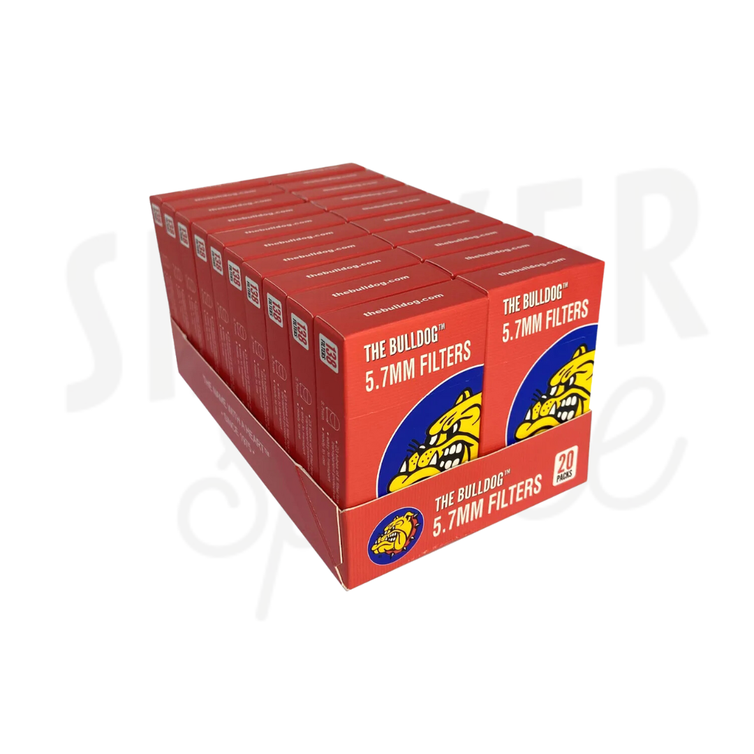 Filtro Red The Bulldog são embalados em caixas com 138 filtros. A caixa contém 23 tubos, e cada um dos tubos possui 6 filtros envoltos em uma película protetora transparente. Produto fácil de transportar e pronto para uso.