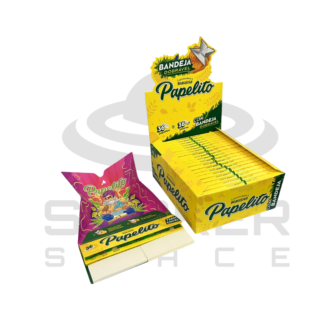Seda Papelito King Size Tradicional Com Piteira e Bandeja conta com um papel de baixa gramatura e alta qualidade, garantindo combustão lenta e suavidade. Além disso, possui marca d’água exclusiva, atestando a veracidade e qualidade do produto, e goma arábica natural. O usuário tem a garantia de redução de danos , com menos fumaça e sem gosto residual. Todas as linhas vêm com o selo FSC, que comprova matéria prima de qualidade.